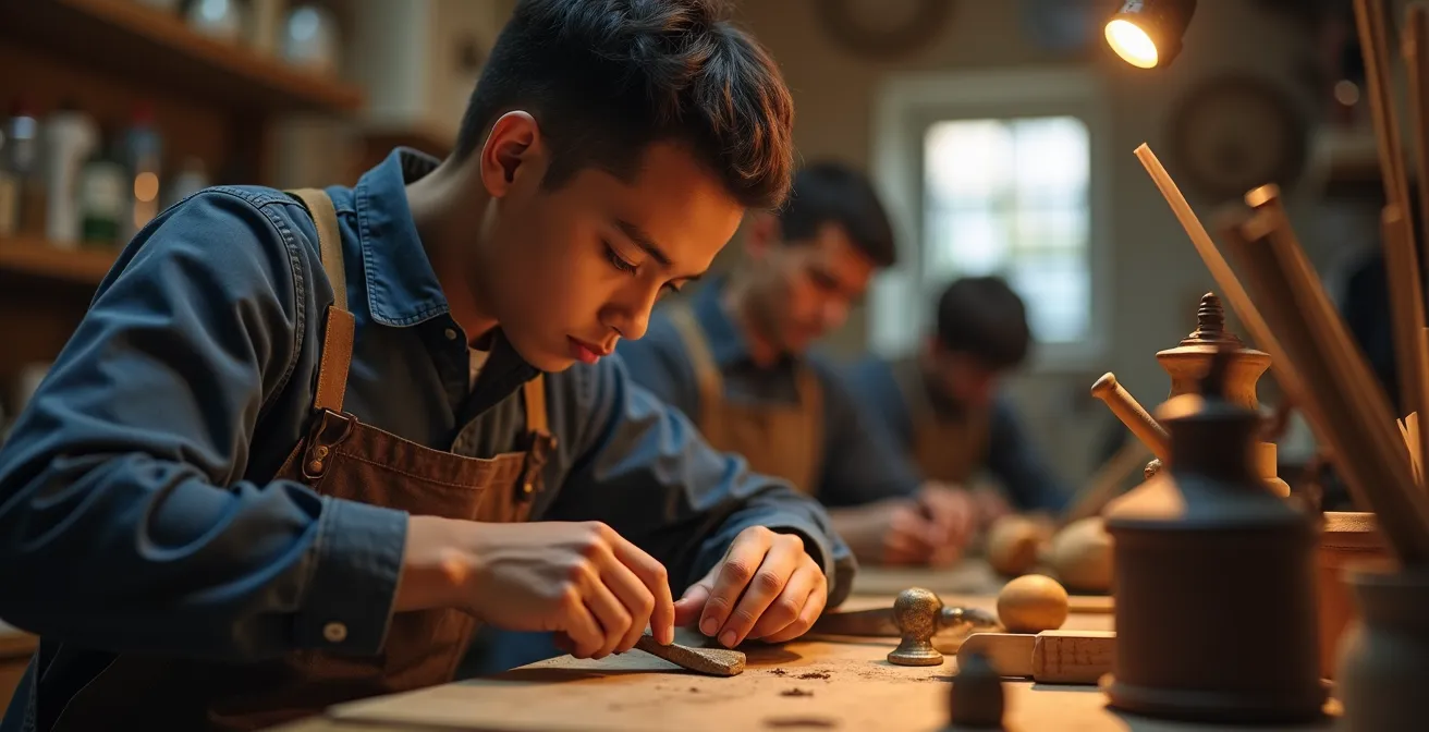 Une année de CAP en apprentissage est bien plus qu’une simple alternance entre les cours théoriques au CFA et la pratique en entreprise. C’est une immersion totale dans la réalité d’un métier, un parcours initiatique où chaque journée forge le professionnel de demain. Loin des clichés, l’apprenti n’est pas une simple main-d’œuvre ; il est un talent en devenir, au cœur d’un système qui a fait ses preuves. Ce n’est pas un hasard si, selon les dernières statistiques, plus de 61% des apprentis dans l’artisanat français préparent un diplôme de ce niveau. C’est la voie royale pour acquérir ce que j’appelle le « capital-geste » : la maîtrise fondamentale des mouvements, des techniques et des savoir-être qui forment le socle de l’artisan.